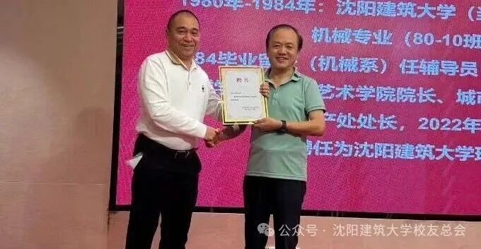会上,珠海校友会特聘请沈阳建筑大学建筑机械专业80级校友、学校退休教师徐占斌老师担任顾问。